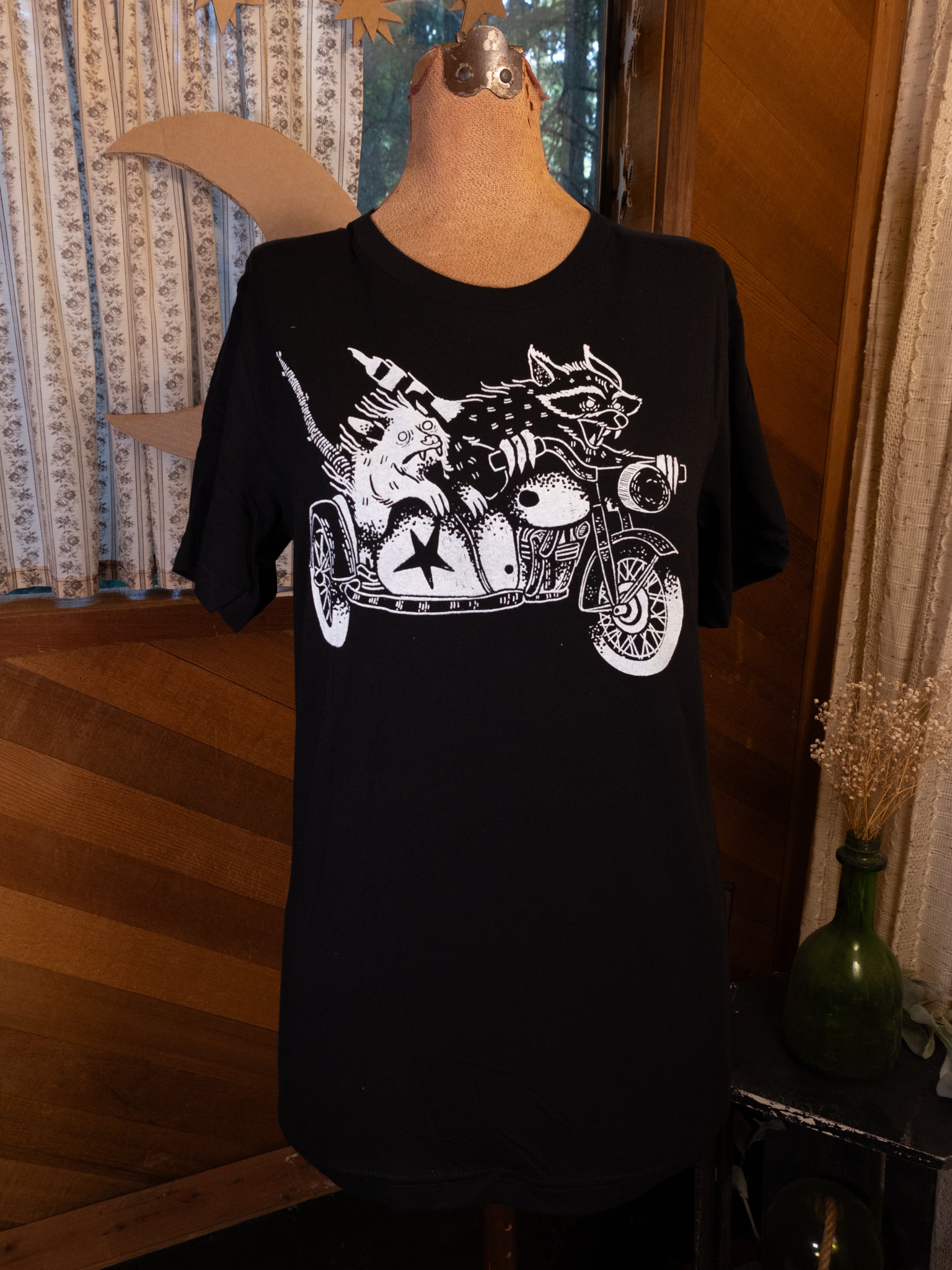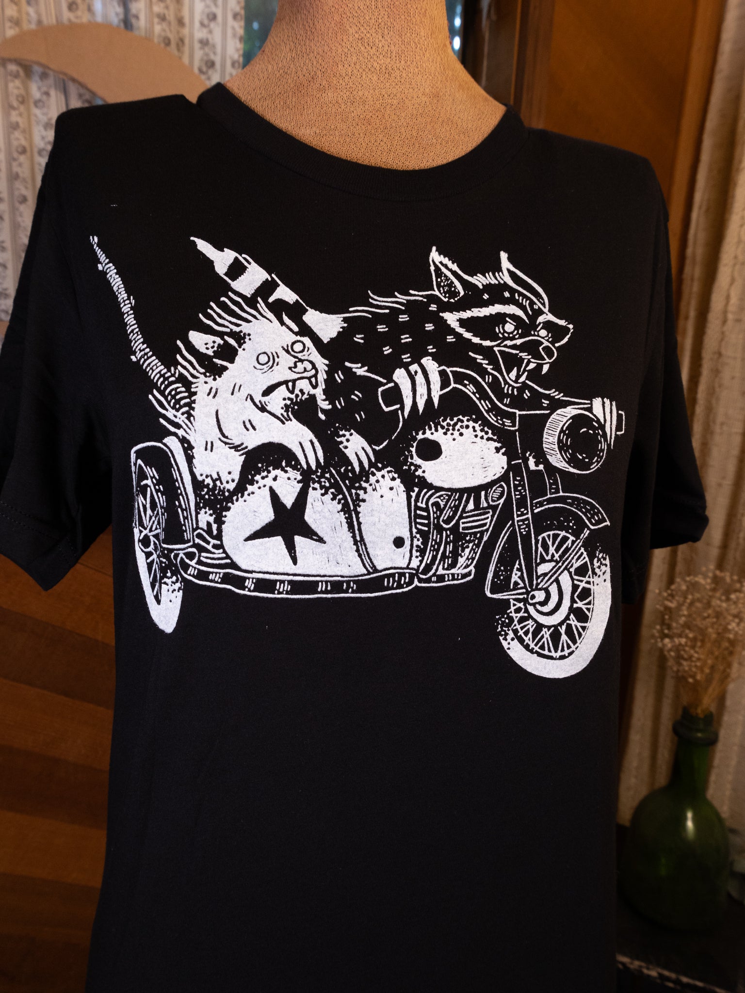 All of our monochrome (image displayed in single color) products are made at home in the JJV print shop. Each individual item passes through our loving paws and into yours. No two prints are exactly alike, and because of this some variance or imperfection may occur within the print. We use water based inks on the highest quality heavy cotton clothing and accessories we can find. Like most graphics on fabric, the design will settle into the cloth after washing and being worn. This is just a normal part of owning and wearing hand printed clothing. I recommend washing on cold, and tumble drying with regular heat