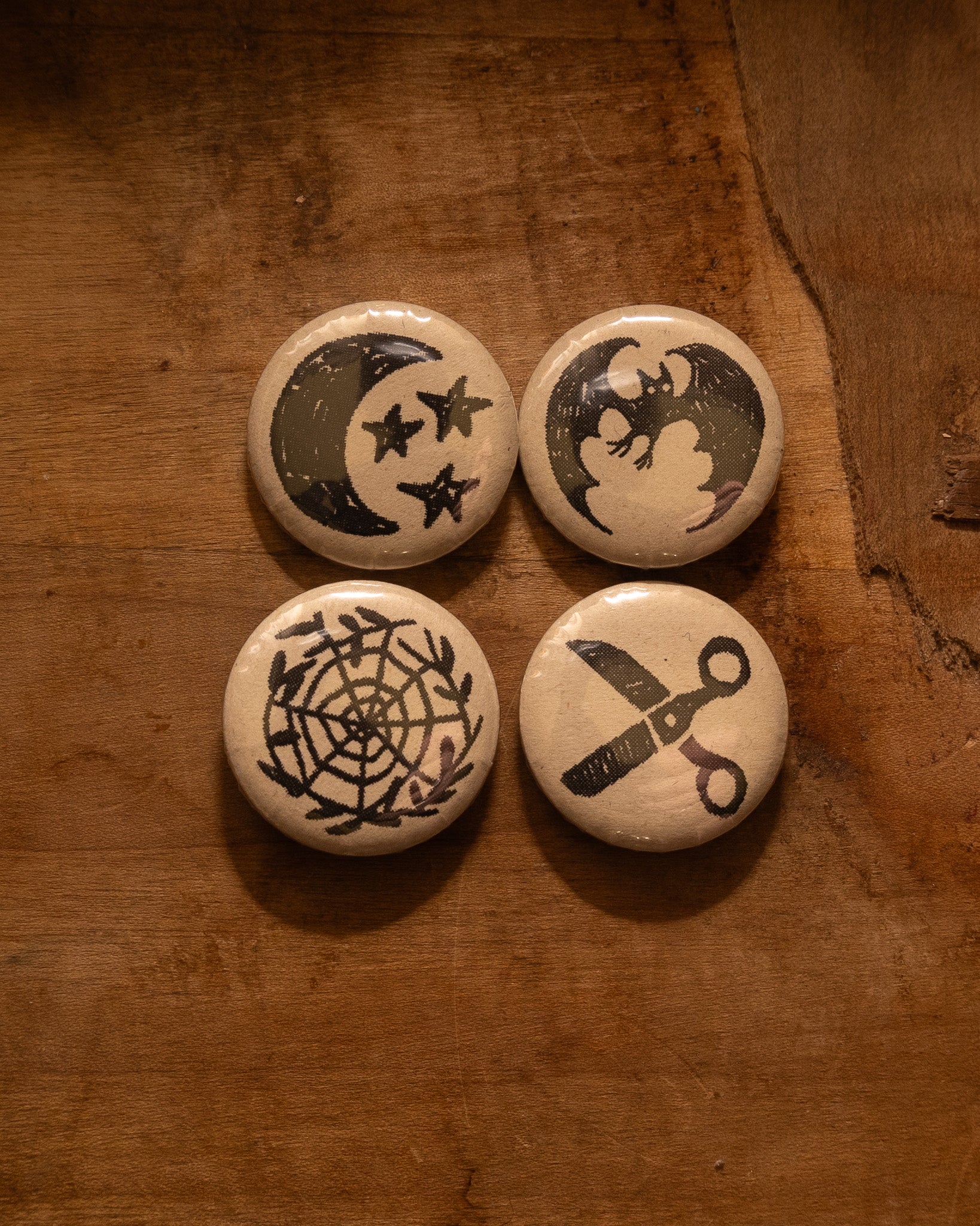 These 1 inch buttons will add a dark & whimsical vibe to your outfit!