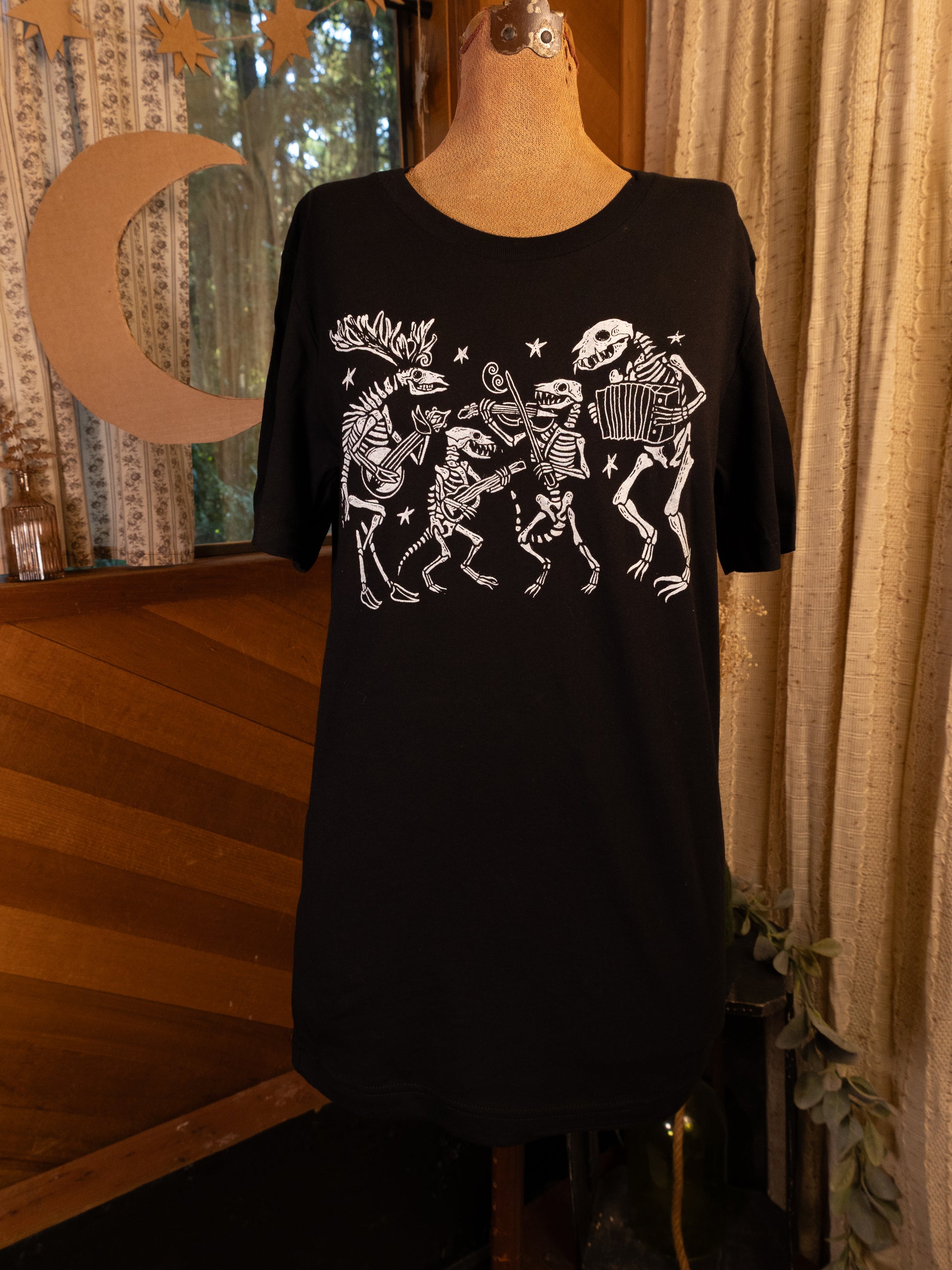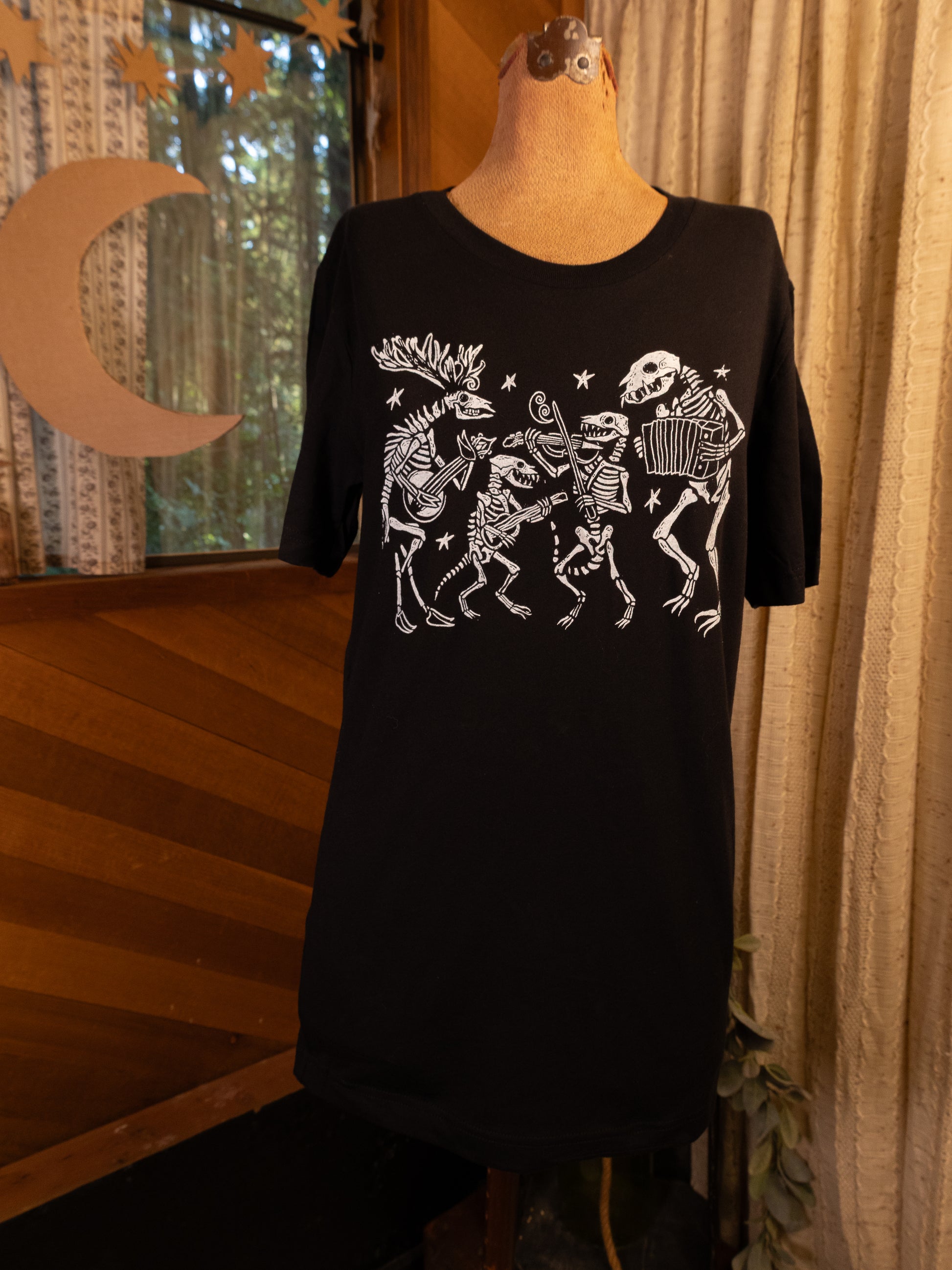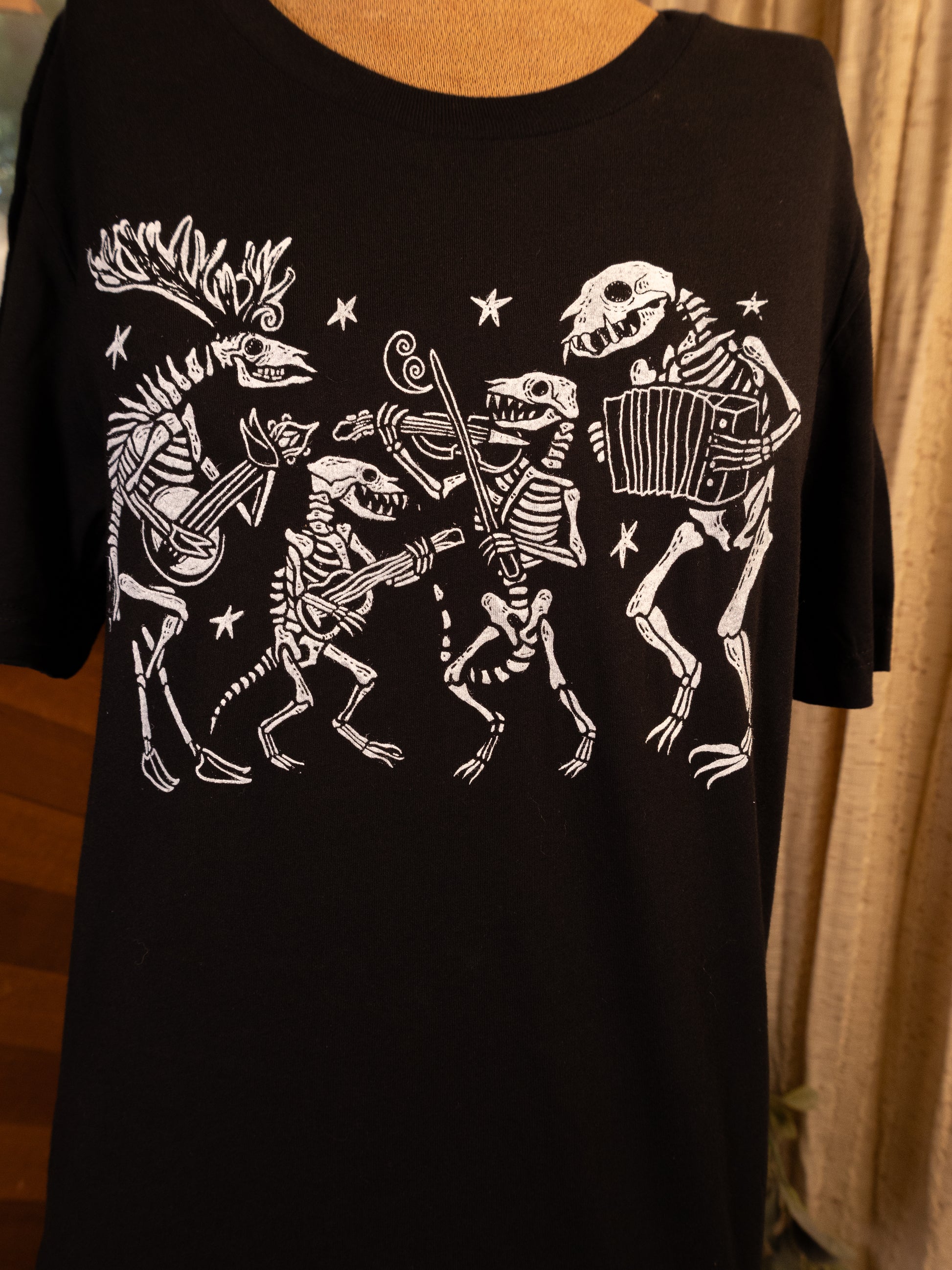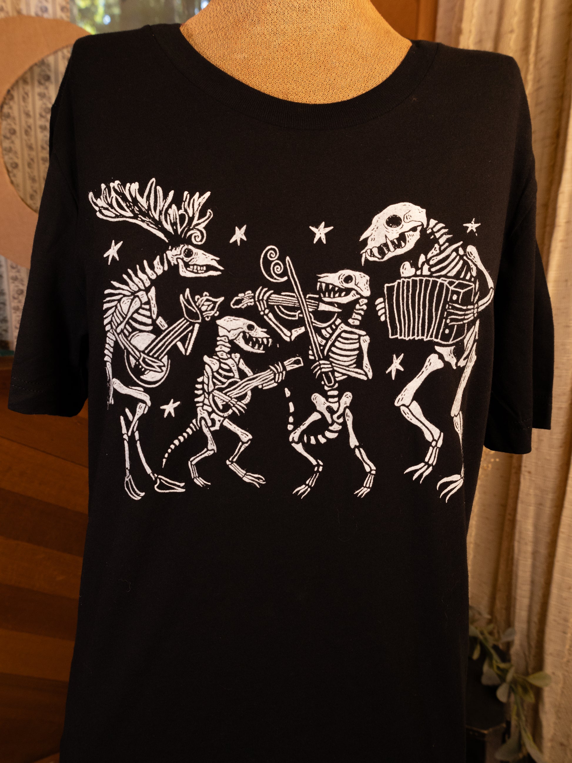 All of our monochrome (image displayed in single color) products are made at home in the JJV print shop. Each individual item passes through our loving paws and into yours. No two prints are exactly alike, and because of this some variance or imperfection may occur within the print. We use water based inks on the highest quality heavy cotton clothing and accessories we can find. Like most graphics on fabric, the design will settle into the cloth after washing and being worn. This is just a normal part of owning and wearing hand printed clothing. I recommend washing on cold, and tumble drying with regular heat