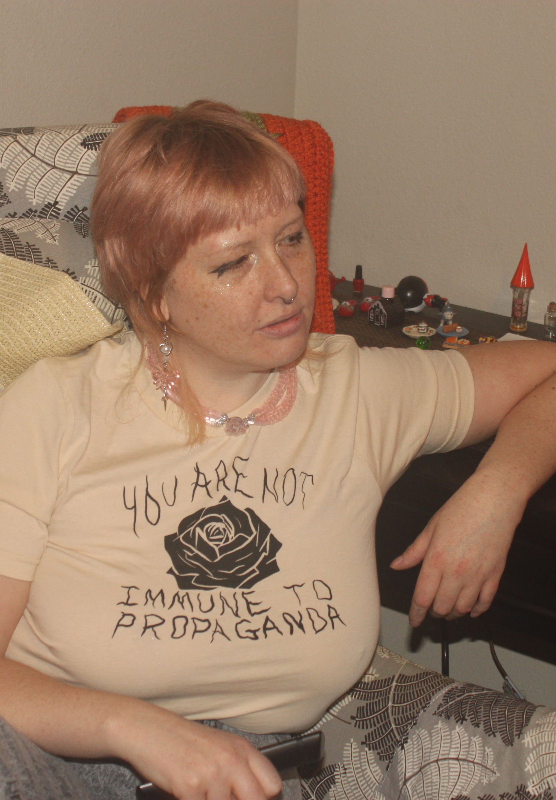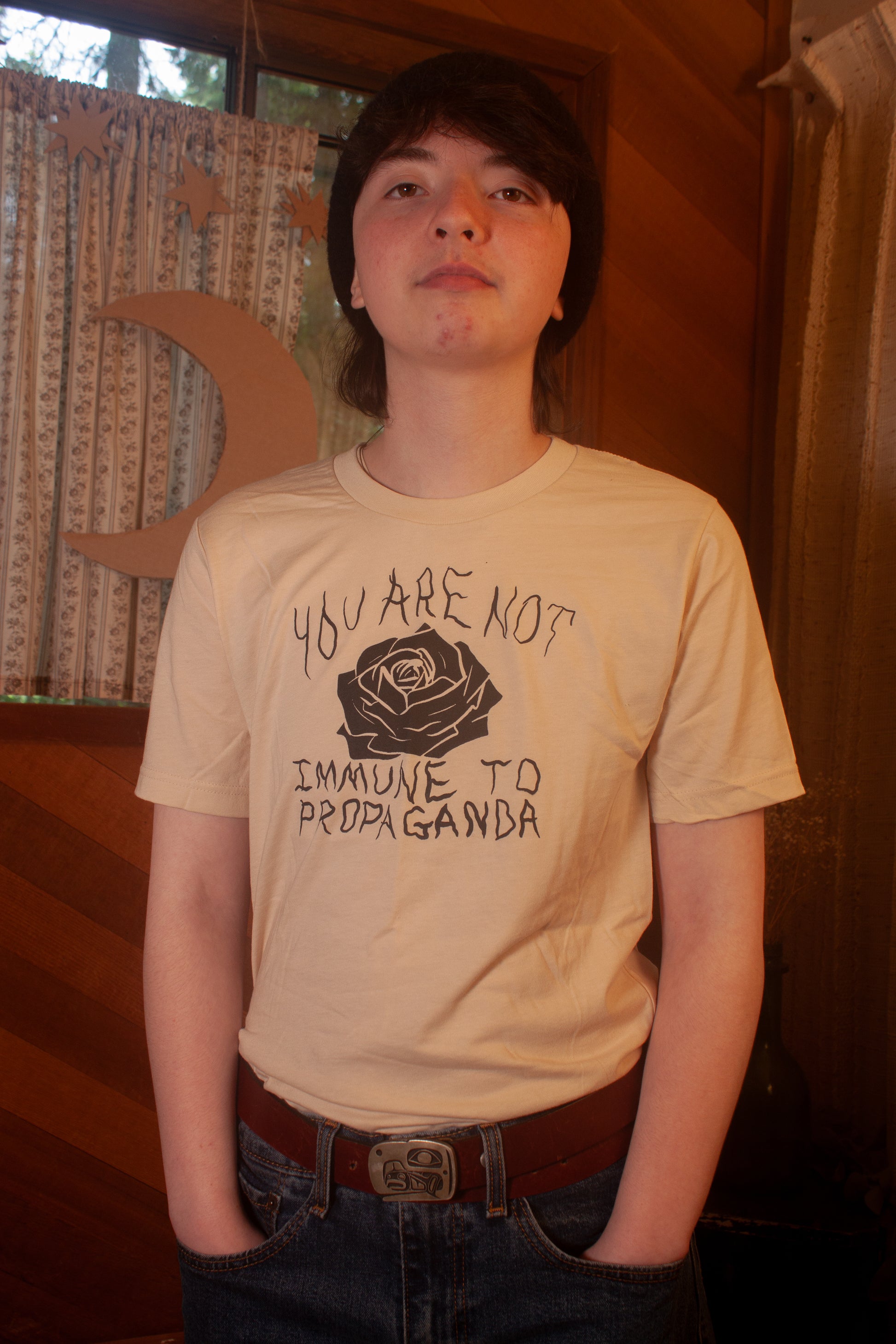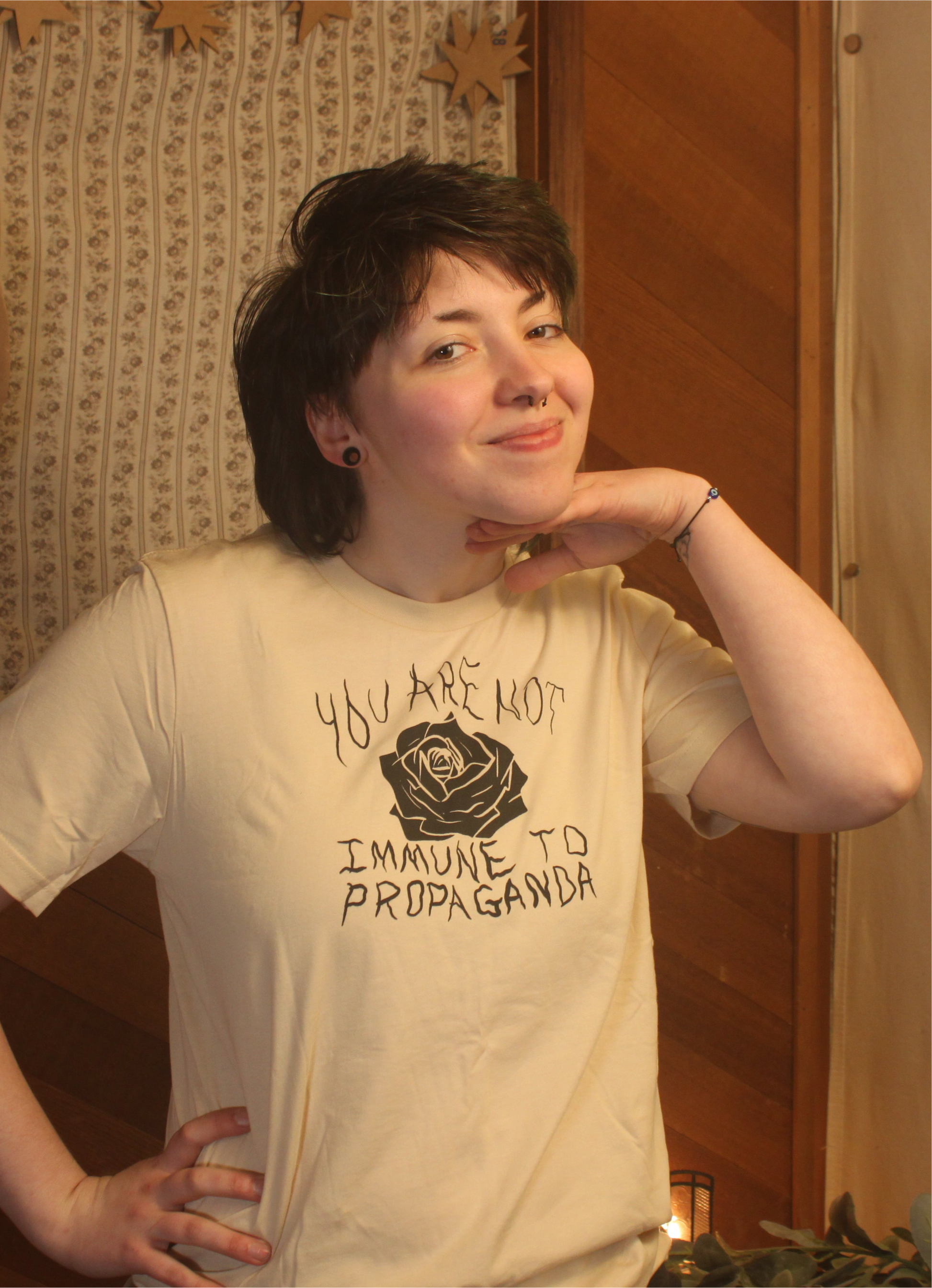 Yes, even you. The print is black ink on a cream Bella + Canvas tee.