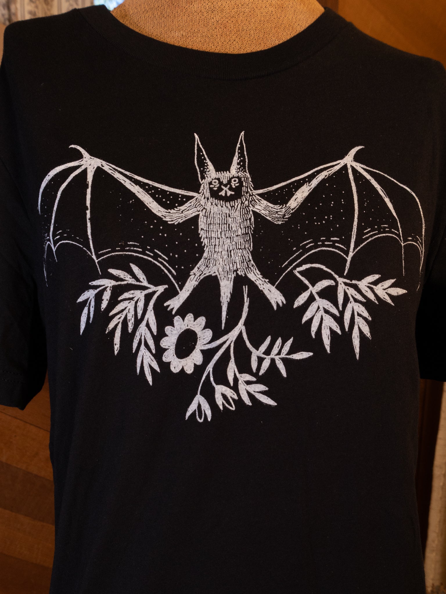 All of our monochrome (image displayed in single color) products are made at home in the JJV print shop. Each individual item passes through our loving paws and into yours. No two prints are exactly alike, and because of this some variance or imperfection may occur within the print. We use water based inks on the highest quality heavy cotton clothing and accessories we can find. Like most graphics on fabric, the design will settle into the cloth after washing and being worn. This is just a normal part of owning and wearing hand printed clothing. I recommend washing on cold, and tumble drying with regular heat