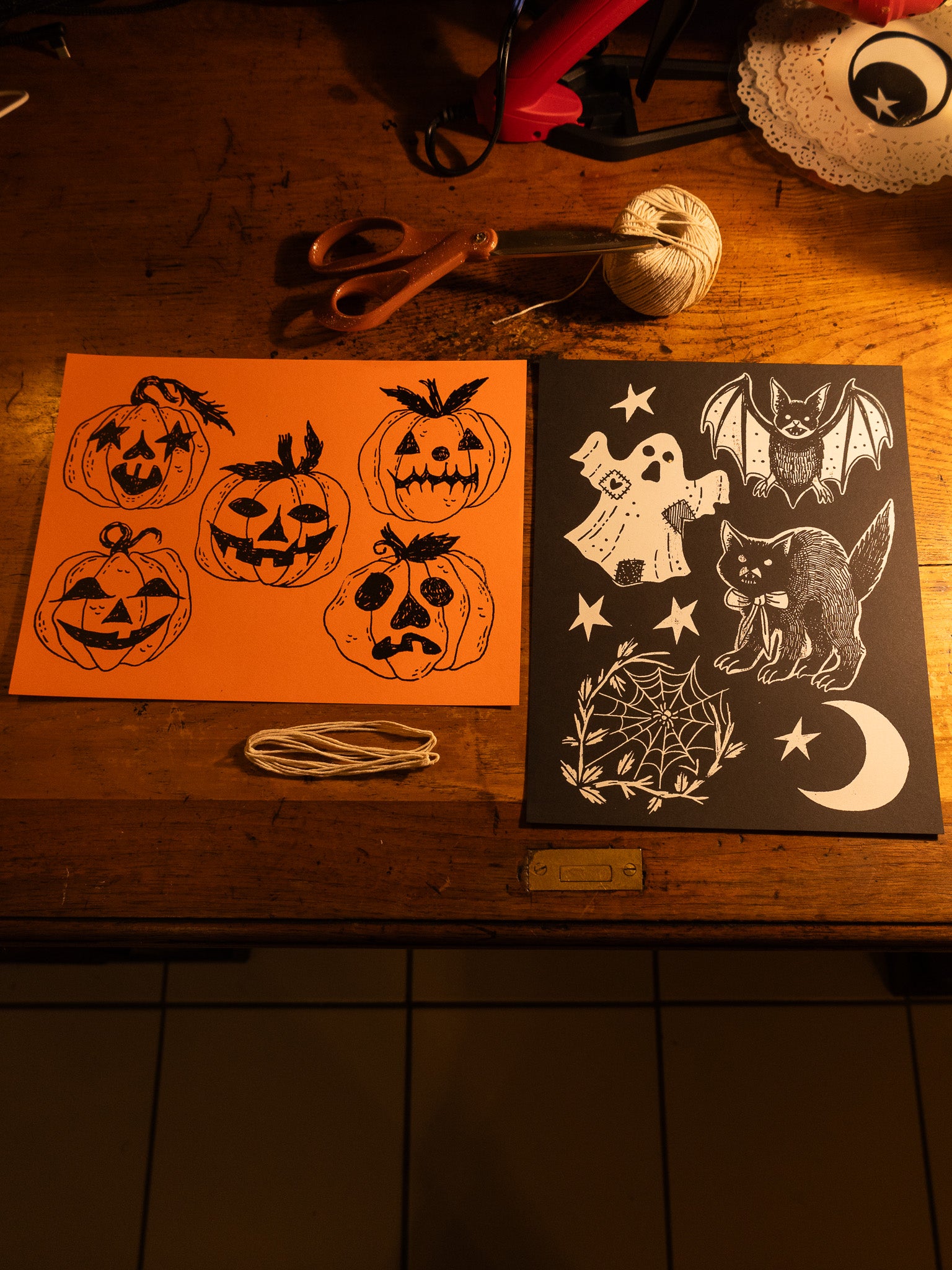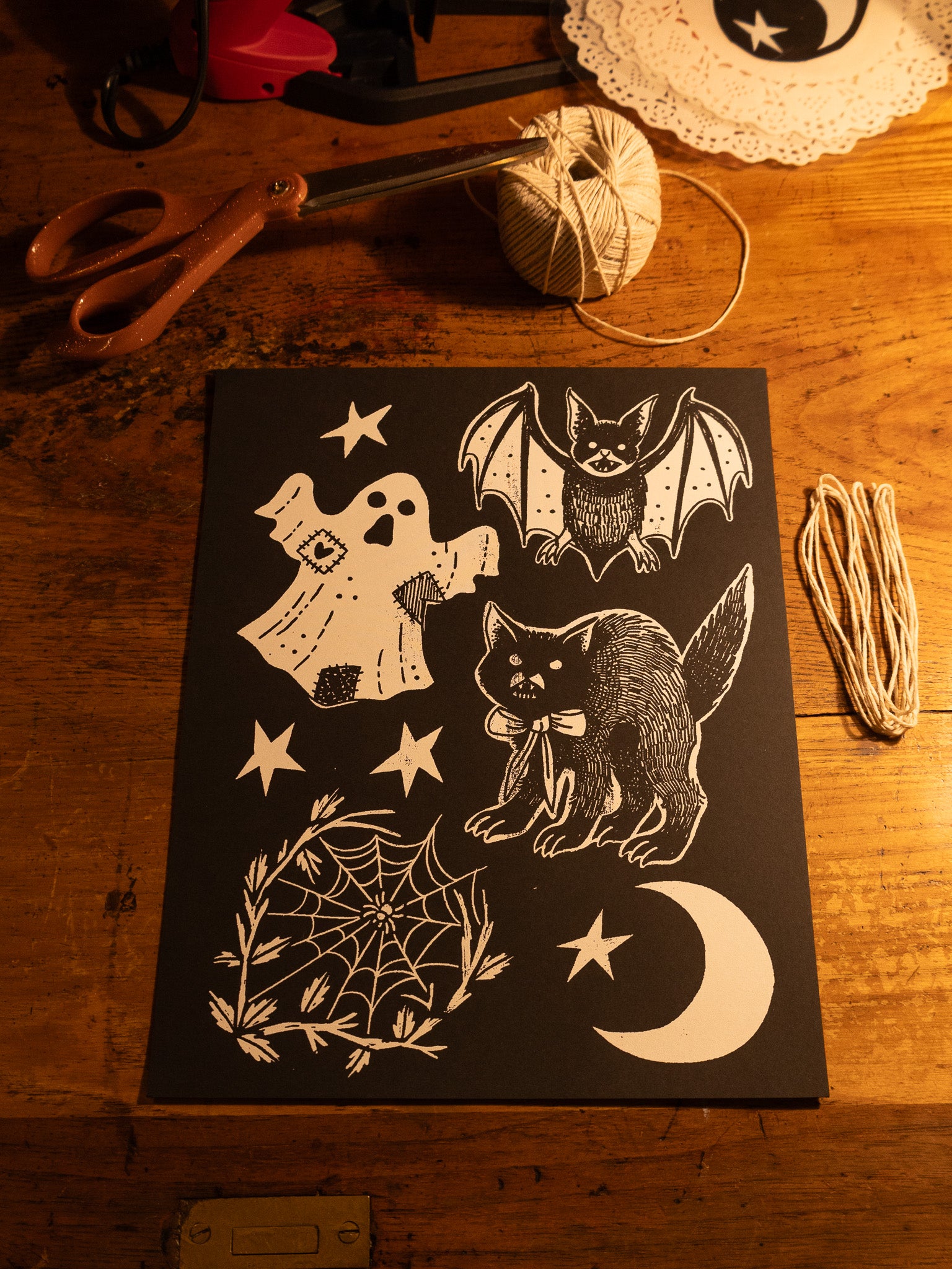 A fun activity for a rainy autumn's day! Comes with two screen printed heavy stock prints & a 5'7" cord of string for hanging.