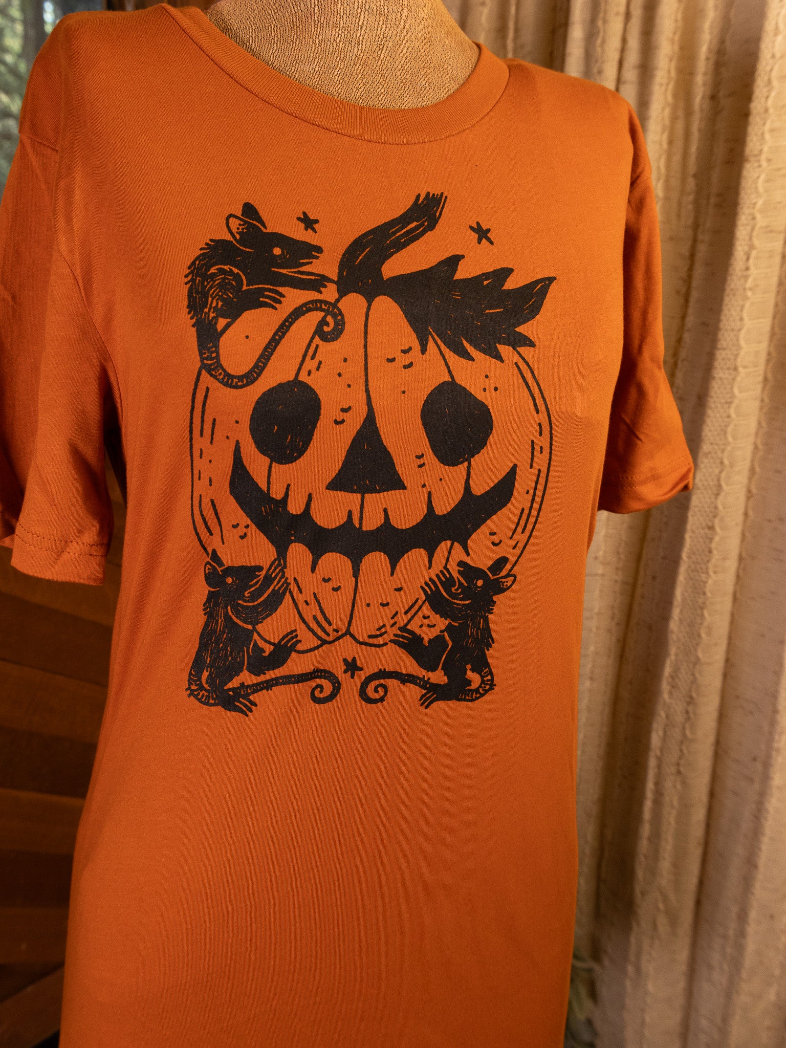 All of our monochrome (image displayed in single color) products are made at home in the JJV print shop. Each individual item passes through our loving paws and into yours. No two prints are exactly alike, and because of this some variance or imperfection may occur within the print. We use water based inks on the highest quality heavy cotton clothing and accessories we can find. Like most graphics on fabric, the design will settle into the cloth after washing and being worn. This is just a normal part of owning and wearing hand printed clothing. I recommend washing on cold, and tumble drying with regular heat