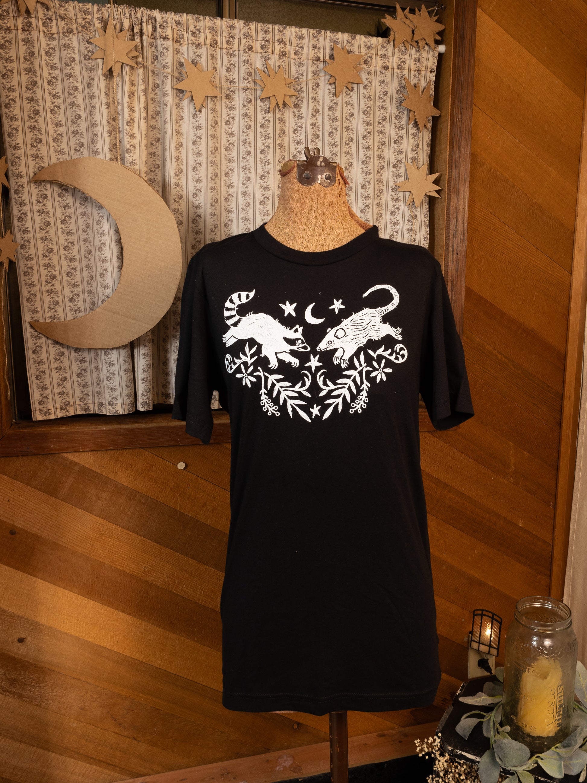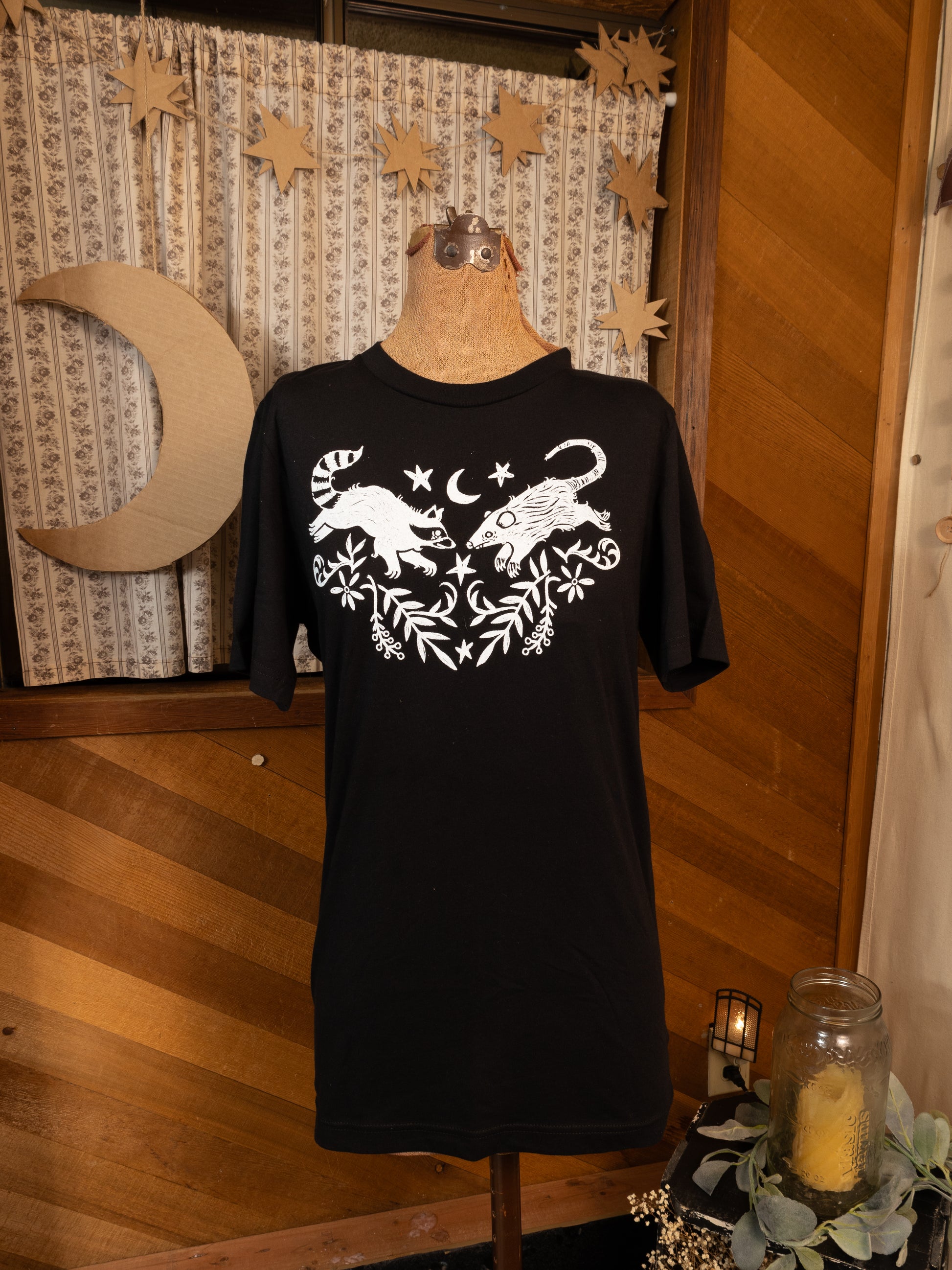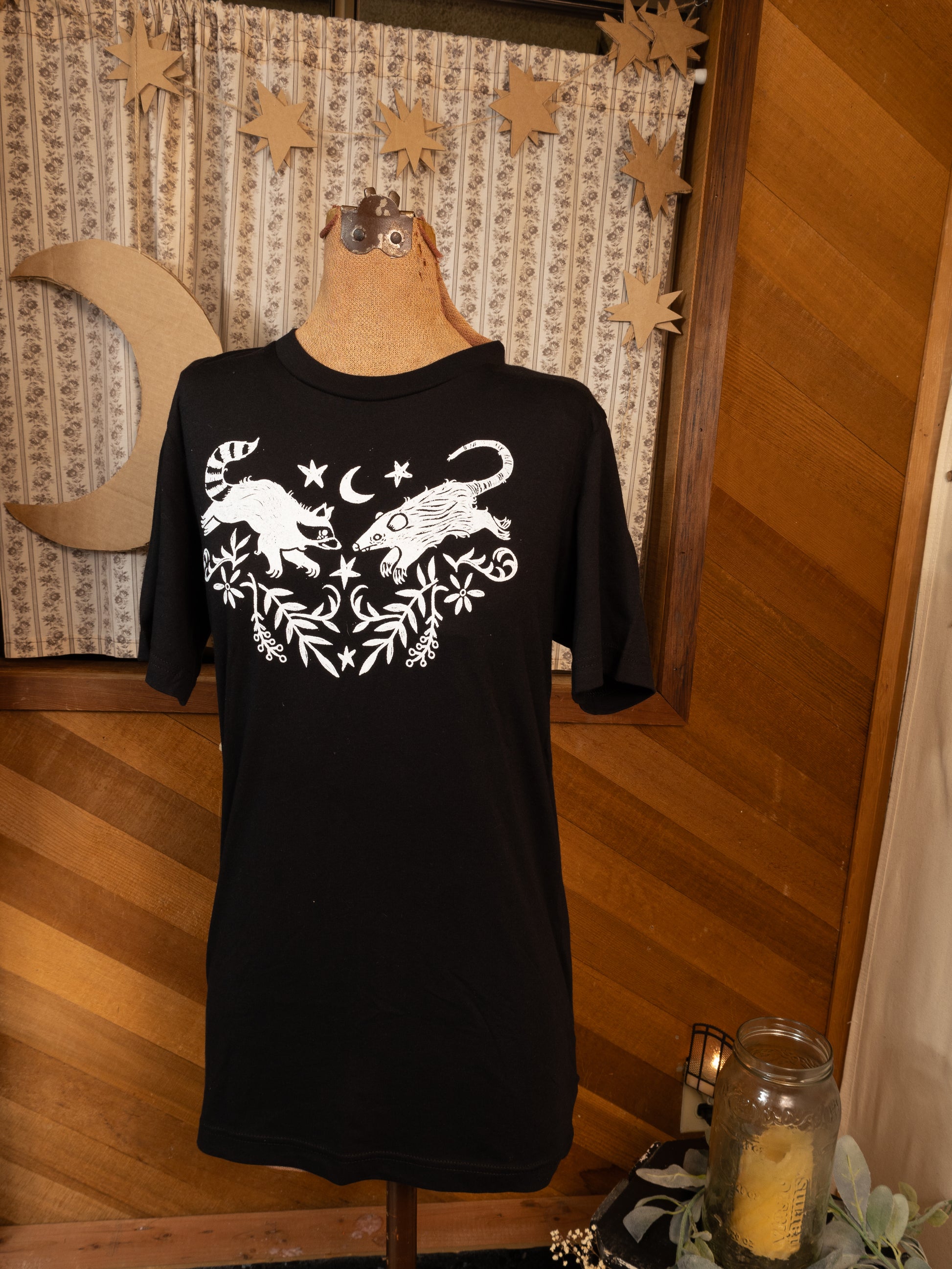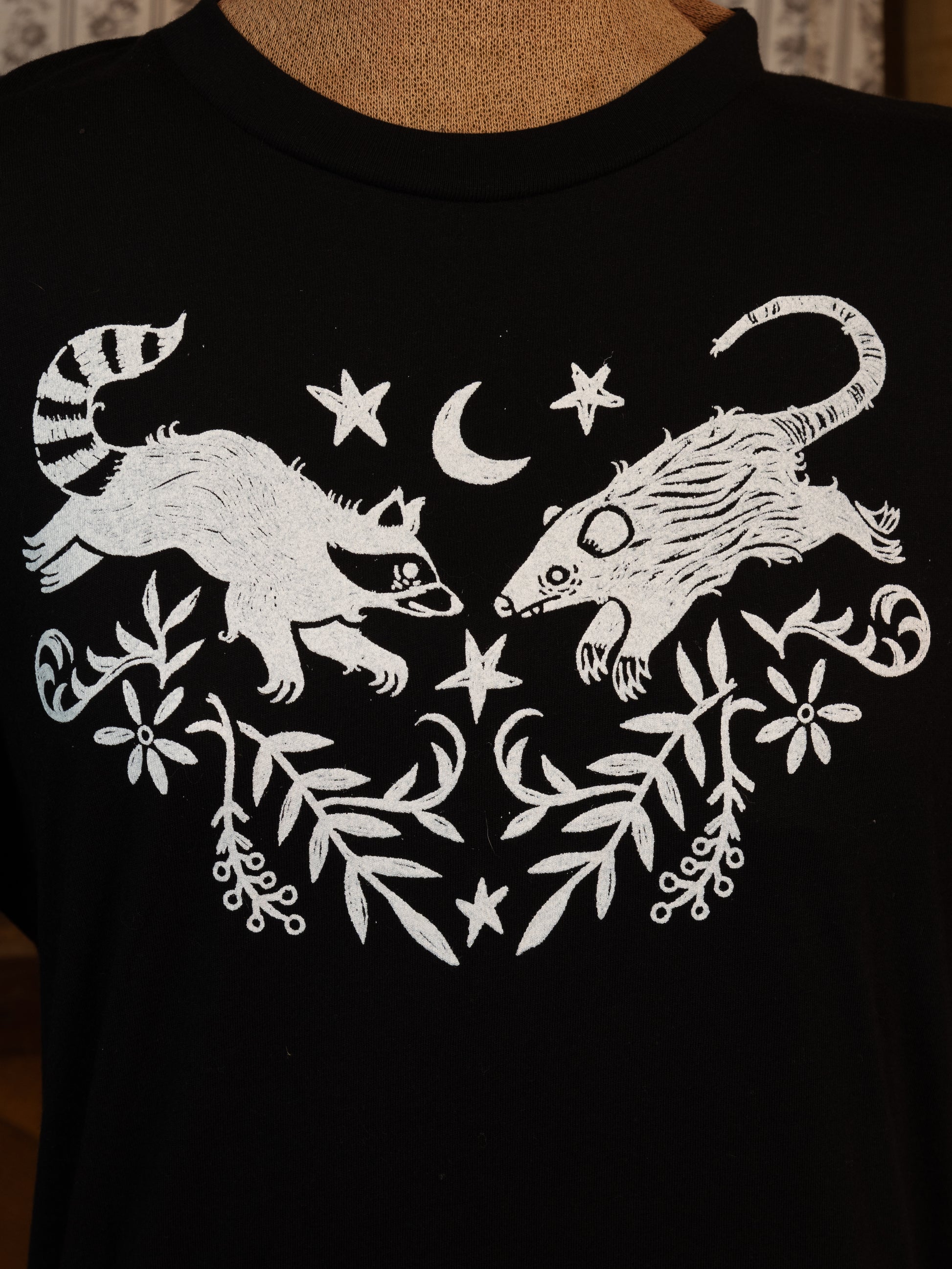 All of our monochrome (image displayed in single color) products are made at home in the JJV print shop. Each individual item passes through our loving paws and into yours. No two prints are exactly alike, and because of this some variance or imperfection may occur within the print. We use water based inks on the highest quality heavy cotton clothing and accessories we can find. Like most graphics on fabric, the design will settle into the cloth after washing and being worn. This is just a normal part of owning and wearing hand printed clothing. I recommend washing on cold, and tumble drying with regular heat