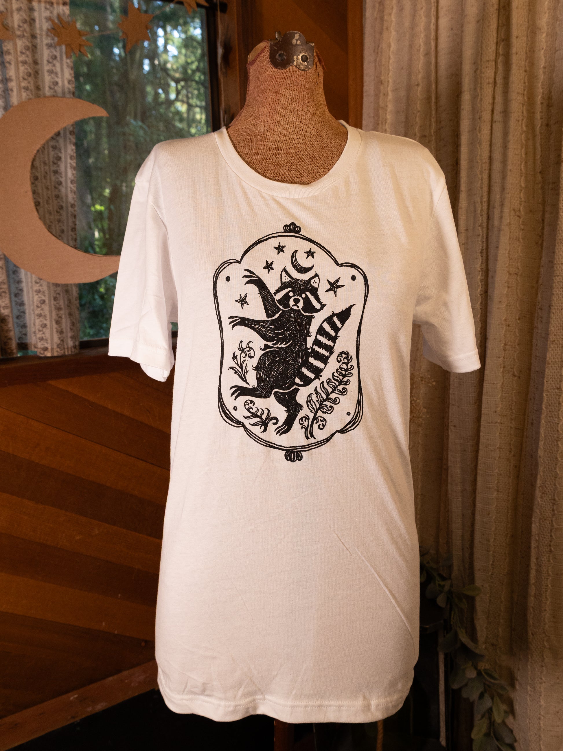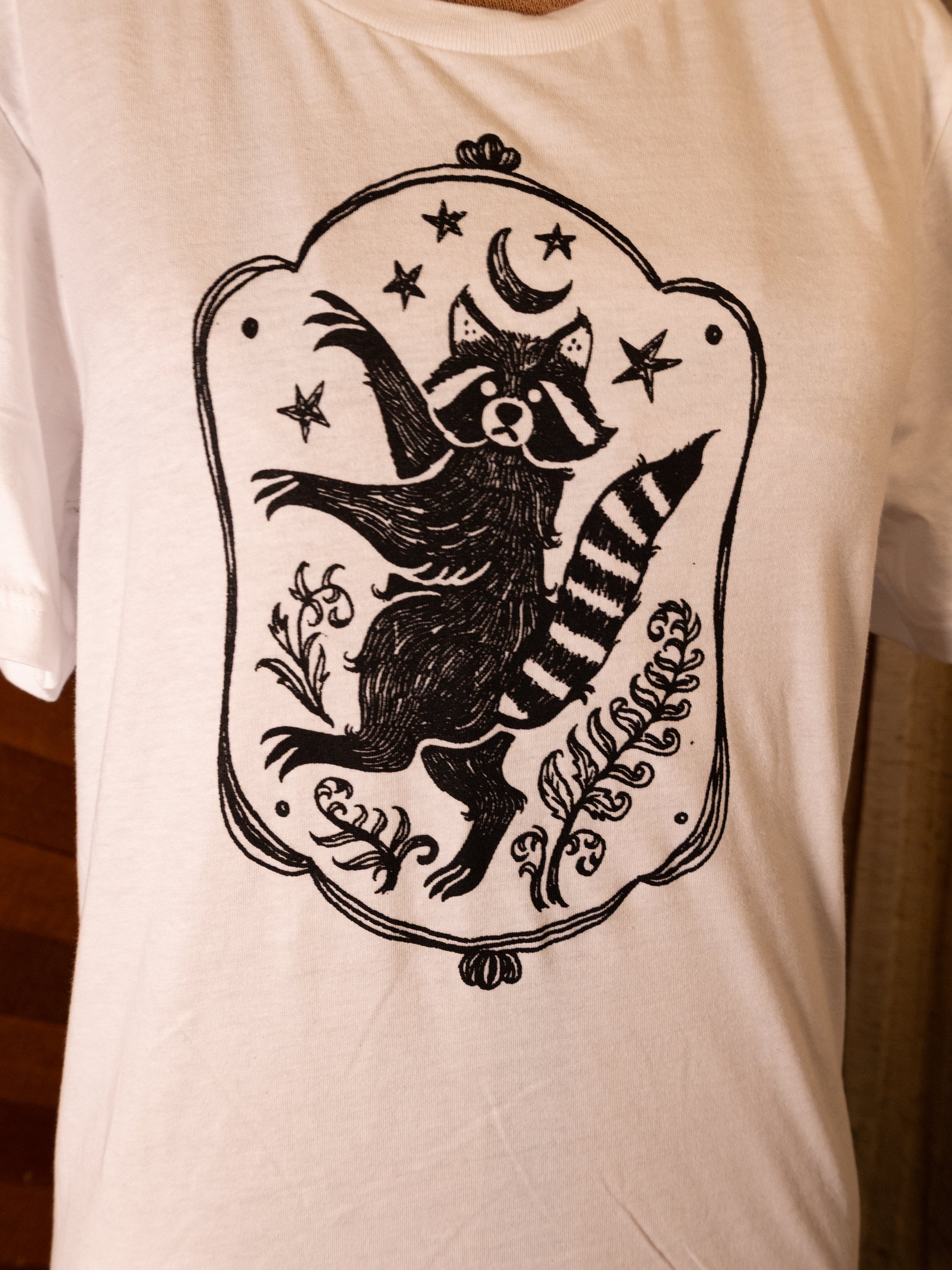 All of our monochrome (image displayed in single color) products are made at home in the JJV print shop. Each individual item passes through our loving paws and into yours. No two prints are exactly alike, and because of this some variance or imperfection may occur within the print. We use water based inks on the highest quality heavy cotton clothing and accessories we can find. Like most graphics on fabric, the design will settle into the cloth after washing and being worn. This is just a normal part of owning and wearing hand printed clothing. I recommend washing on cold, and tumble drying with regular heat