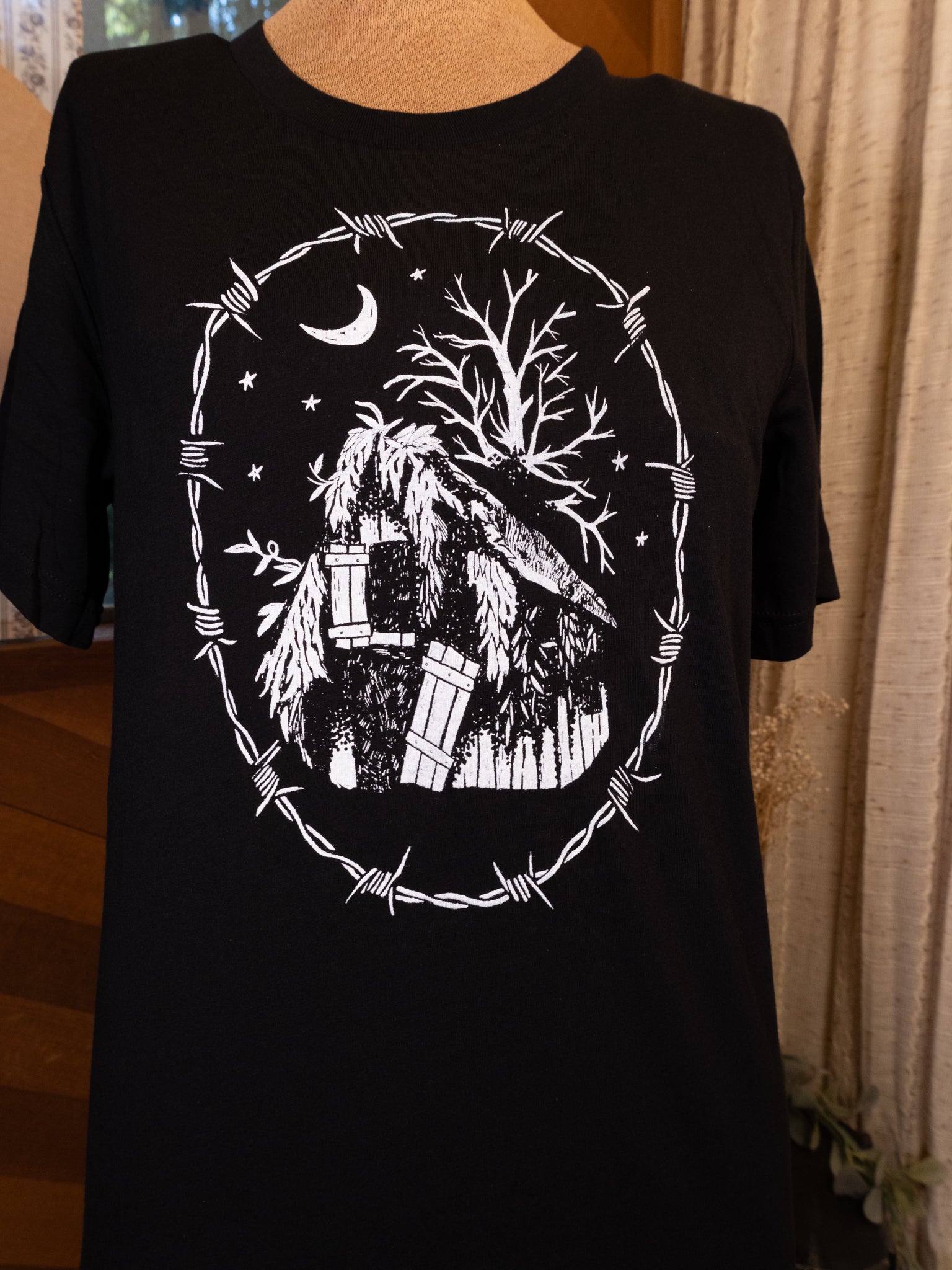 All of our monochrome (image displayed in single color) products are made at home in the JJV print shop. Each individual item passes through our loving paws and into yours. No two prints are exactly alike, and because of this some variance or imperfection may occur within the print. We use water based inks on the highest quality heavy cotton clothing and accessories we can find. Like most graphics on fabric, the design will settle into the cloth after washing and being worn. This is just a normal part of owning and wearing hand printed clothing. I recommend washing on cold, and tumble drying with regular heat