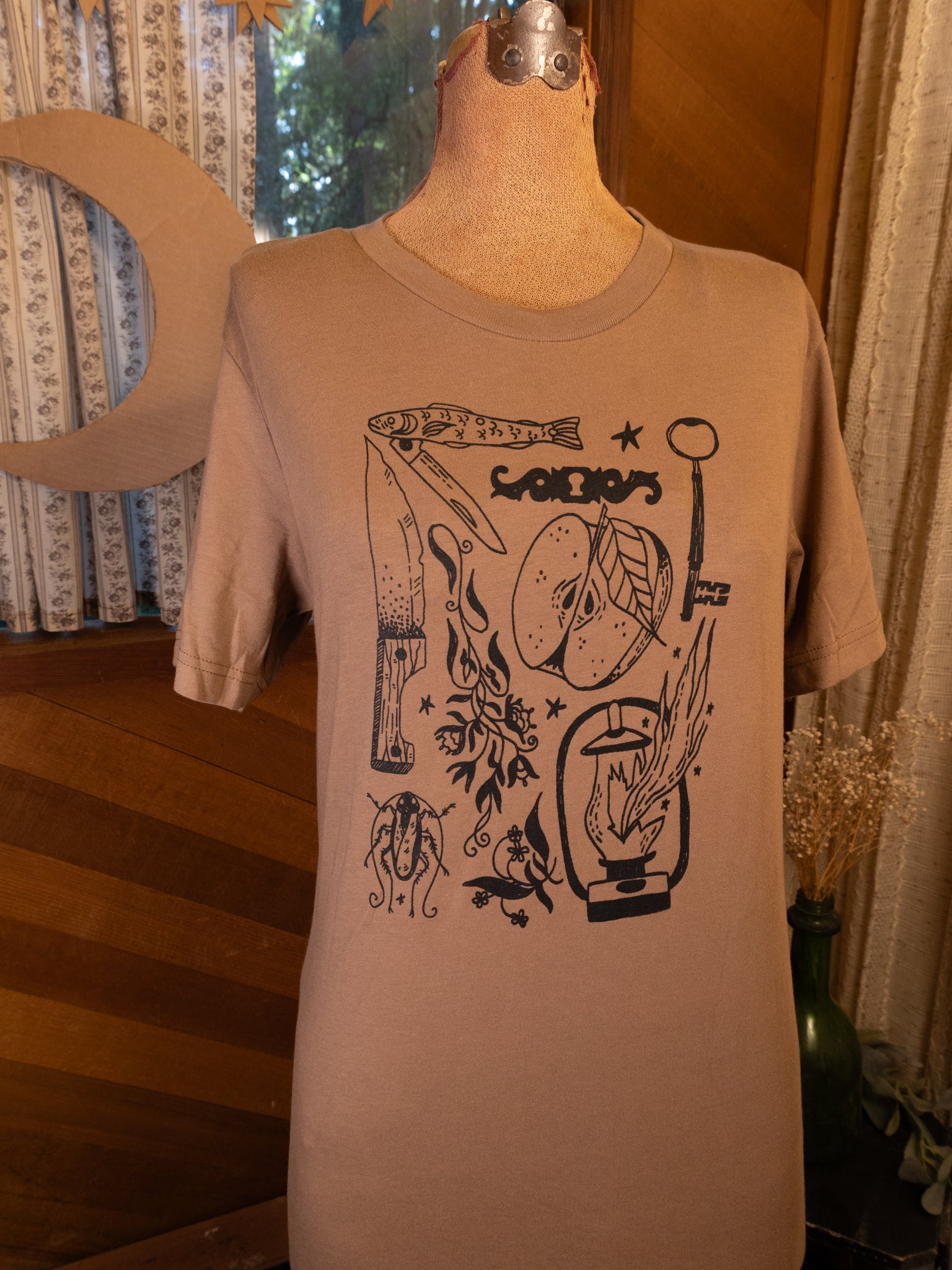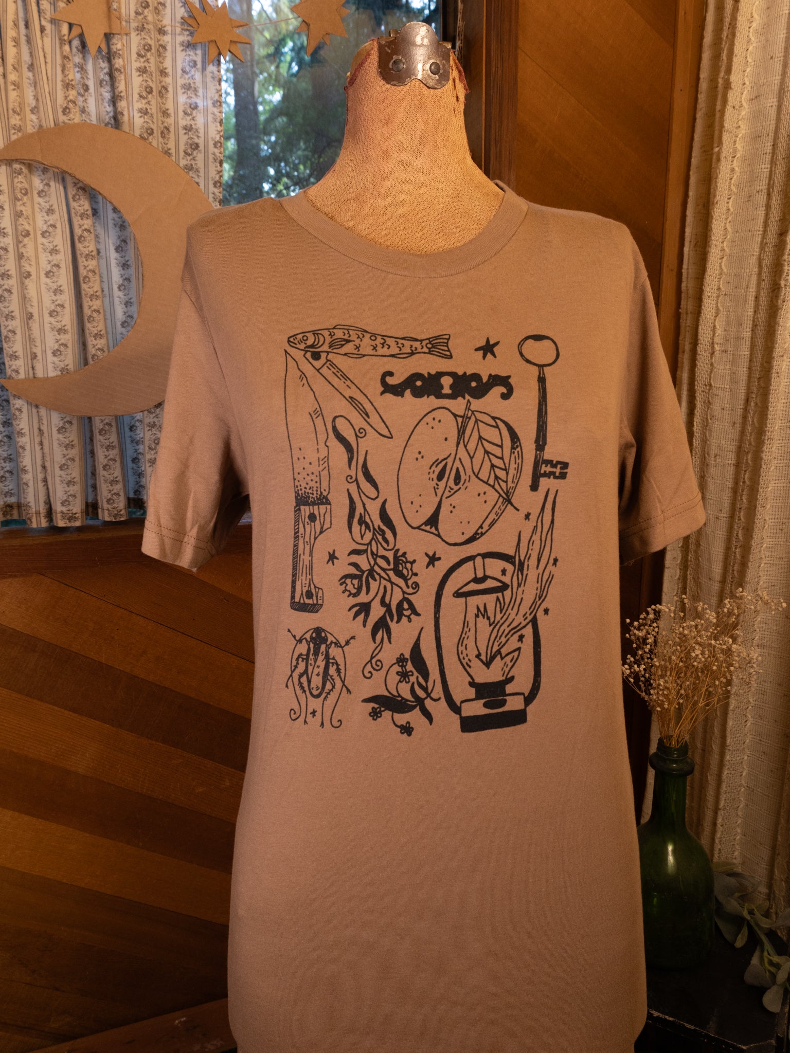All of our monochrome (image displayed in single color) products are made at home in the JJV print shop. Each individual item passes through our loving paws and into yours. No two prints are exactly alike, and because of this some variance or imperfection may occur within the print. We use water based inks on the highest quality heavy cotton clothing and accessories we can find. Like most graphics on fabric, the design will settle into the cloth after washing and being worn. This is just a normal part of owning and wearing hand printed clothing. I recommend washing on cold, and tumble drying with regular heat