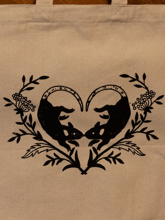 Raccoon n' Opossum Canvas Tote in Pitch Black